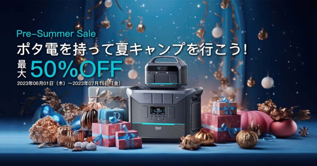 2023年06月01日(木)~2023年07月15日(金)までの期間、DaranEner公式Amazon店にてポータブル電源とソーラーパネルが最大50%OFFになるサマーセールを開催します。