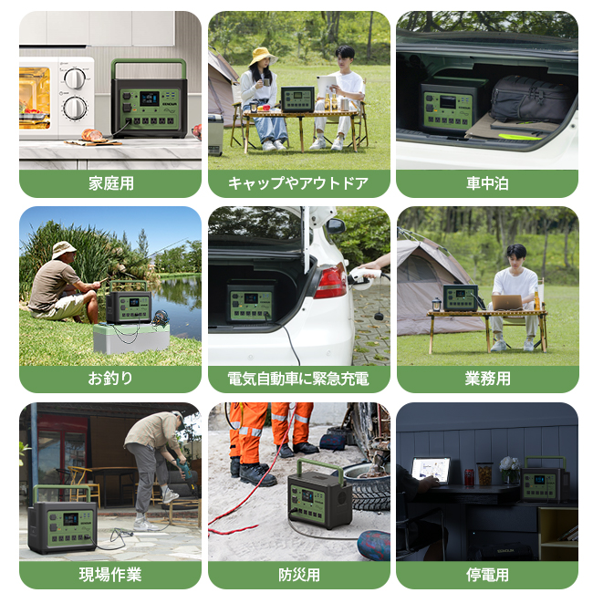 【95%家電に適用できる高出力と大容量】たっぷりな1536Wh容量を備える上、ACからDCまでに合計15個の出力口がつき、さまざまなモバイル端末、生活家電、調理器具、電気工具や車載商品などにも適用。消費電力の自由化が実現します。 また、AC出力は純正弦波を採用し、電気機器に損傷を与えることなく安定した効率的な電力を供給します。