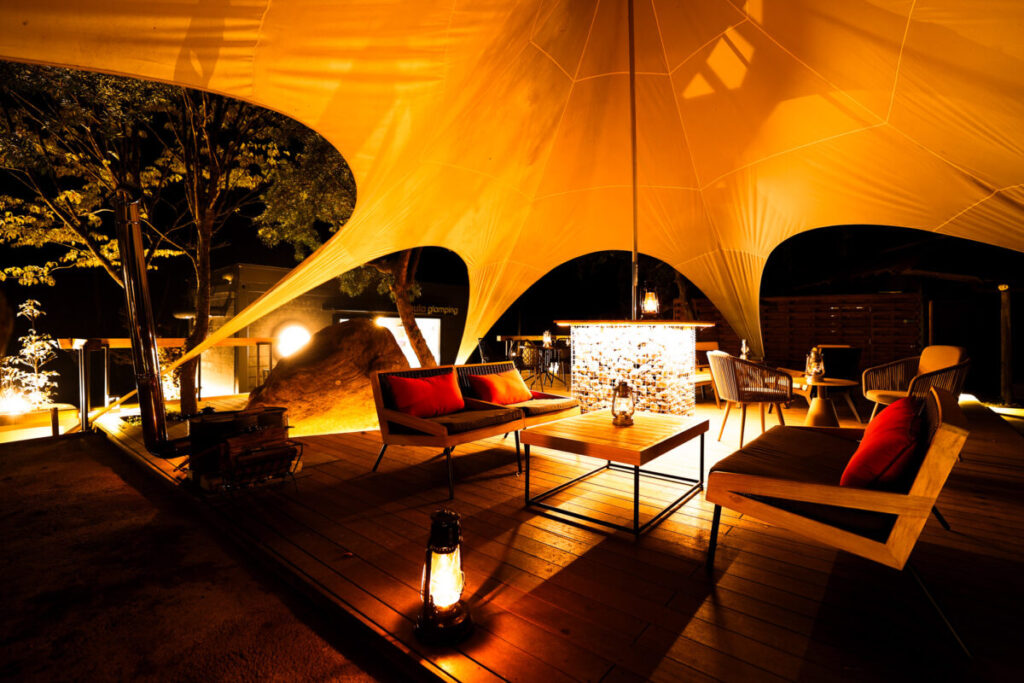 同施設は、『アウトドア ✕ 食 ✕ 体験』に注目し、フードエデュケーションや有名レストラン出身のシェフ監修のグランピングフルコースなど、ここでしか味わえない独創的な料理が楽しめるグランピング施設となる。また、ラグジュアリーホテルのような大型テントからは、満天の星を眺めなることができ、1日中特別な時間を過ごせるのが特徴だ。