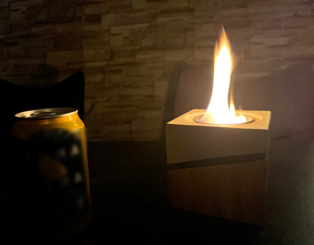 これなら仕事に疲れて動きたくないような夜も炎の癒やしを楽しめます。テーブルに置いておけばいつでも火を灯すだけで焚き火ができるのだから炎好きにはたまらないですね。
