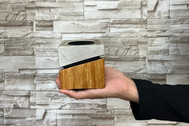 そしてもう一つの特長がコンパクトかつ使い方が簡単であるということ。このファイヤーセラピーのサイズは10x10x10cmの立方体。重量は1.8kgとそれなりの重さを確保することで安定性を保ちながらも、片手で持ち運べる軽さを保っています。