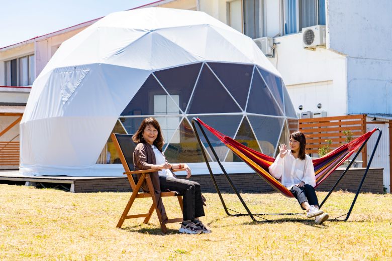 女将さんの心のこもった手料理が自慢の「洋風民宿グラスハウス」と、グランピング×ホテル・旅館の新しい掛け合わせのグランピング施設を運営する「glampark」がタイアップし、ドーム型のグランピング施設【glamparkグラスハウス】がオープンした。
