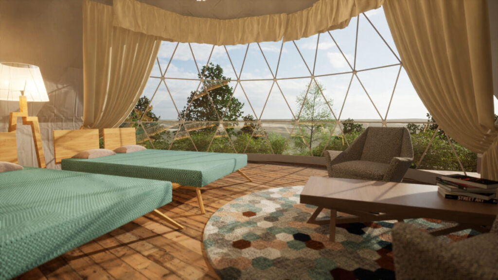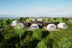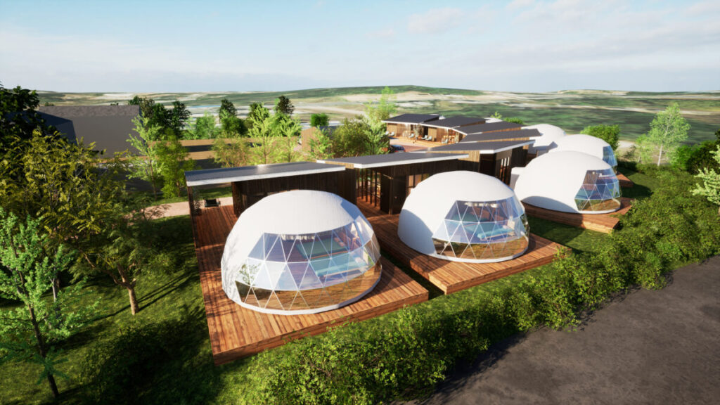 英虞湾(あごわん)の潮風香る全7棟のグランピング施設、シアタードーム付きテントも
