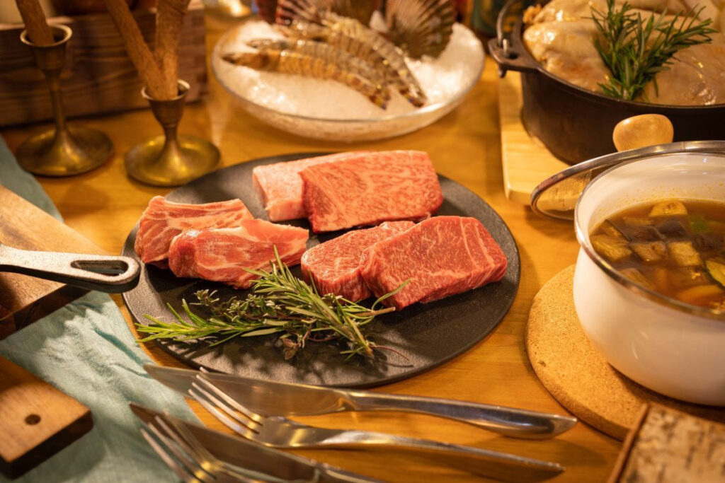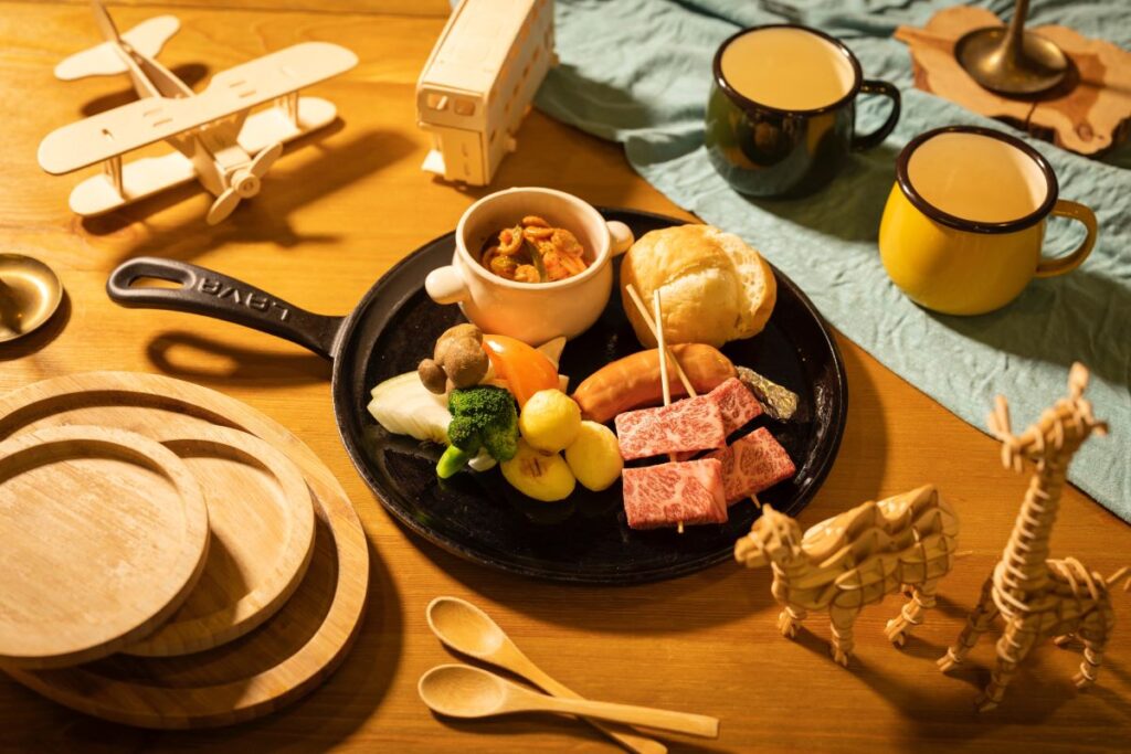 ⽇本三⼤和⽜として知られる松阪⽜をメインに、英虞湾で獲れた海の幸など伊勢志摩BASEならではの2種類のBBQメニューを用意しています。定番人気のBBQプランと、松坂牛サーロインステーキと松阪牛ランイチステーキを食べ比べできる豪華特選BBQをお選びいただけます。⾷材持込でオリジナルBBQができる「素泊りプラン」もあるので、ご自身に合った過ごし方でそれぞれのグランピングをお楽しみください。