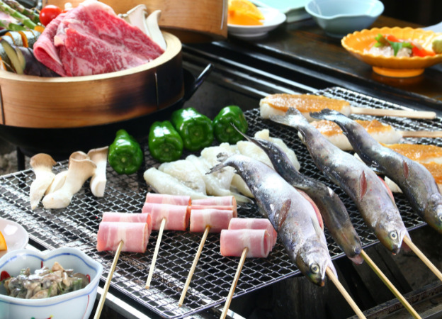 グランピング宿泊者限定のオリジナル極上BBQプラン。BBQプランはお肉・海鮮・野菜とバランスの取れた食材が下処理済みの状態で提供されるため簡単に楽しむことができます。