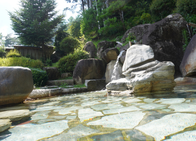 広い庭園に設けられている露天風呂は恵まれた自然風景を肌で感じながらゆったりと温泉をお楽しみいただけます。