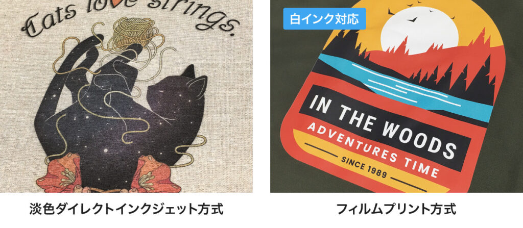 オリジナルエコバッグ印刷では、生地カラー別に適した印刷方式を採用しています。