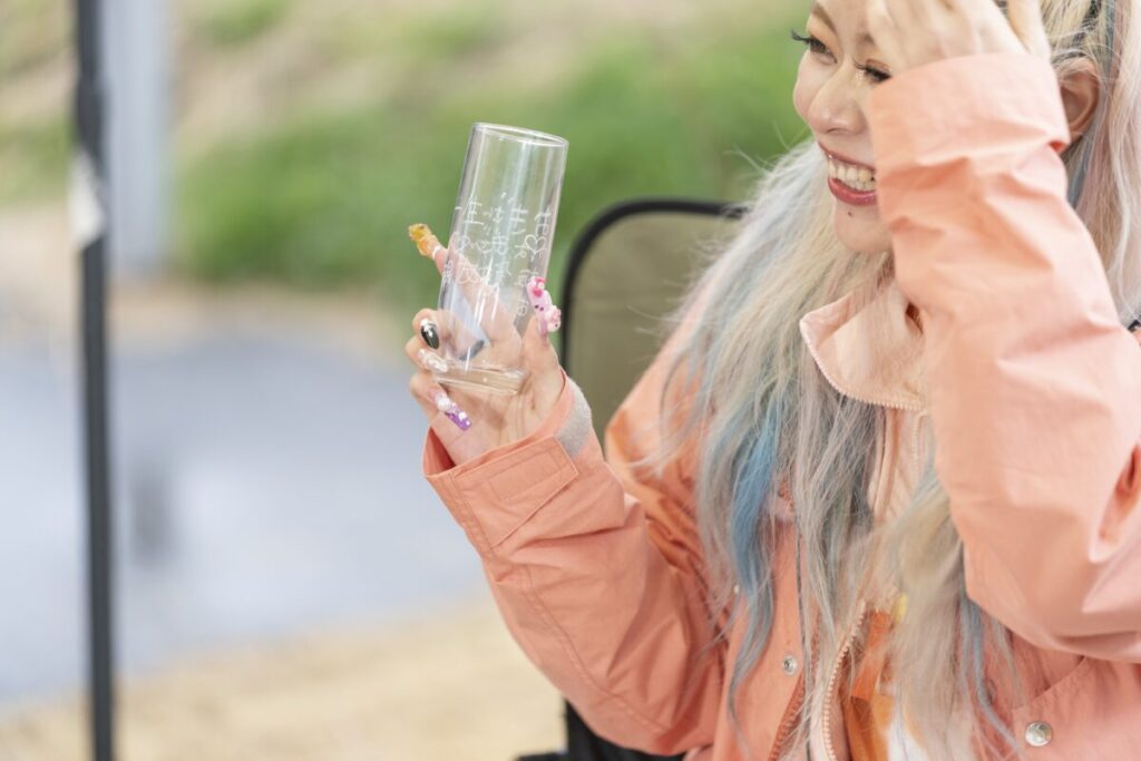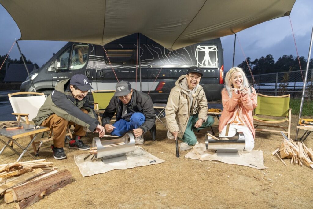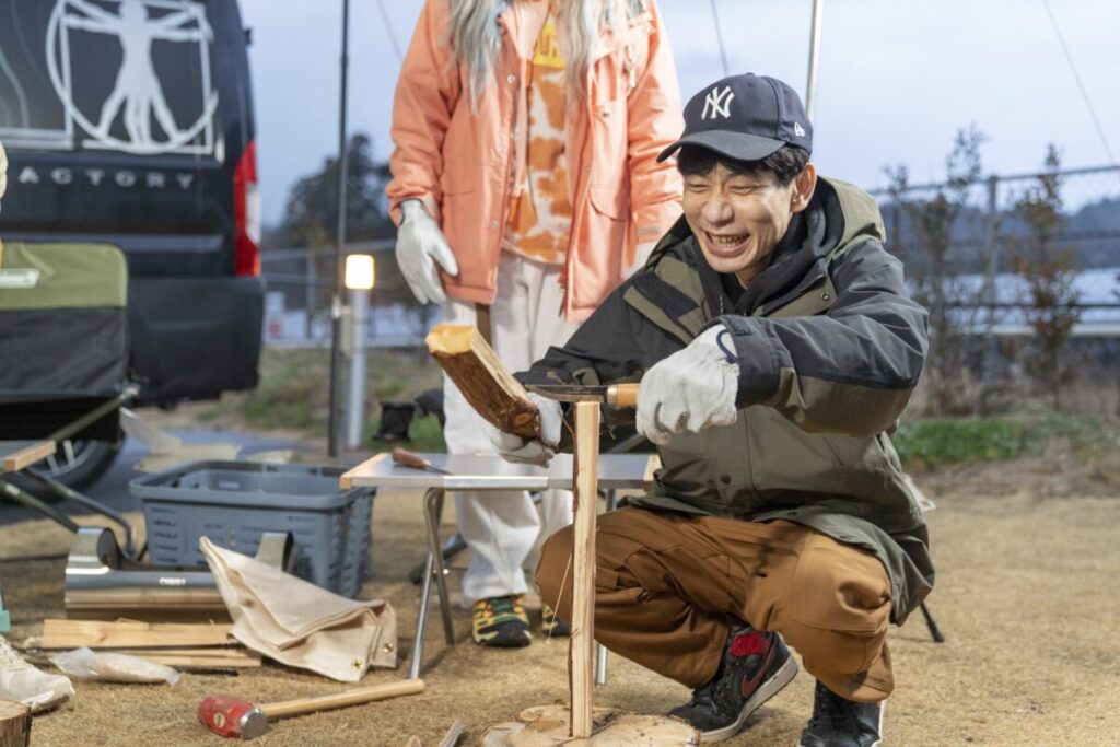 その後は、車中泊キャンプにハマっている板倉も初体験だという「薪割り」や「火おこし」を楽しんだり、「飯盒と炊飯器で炊いたご飯の食べ比べ」など、板倉考案のプランを満喫した一同。キャンプ初心者の荒川も、『マジ青春でした!』と大満足だった様子。ちなみに、オリジナルグラス作りで荒川が彫った文字は『一生親友♡』。4人でのキャンプが最高の思い出になったようだ。