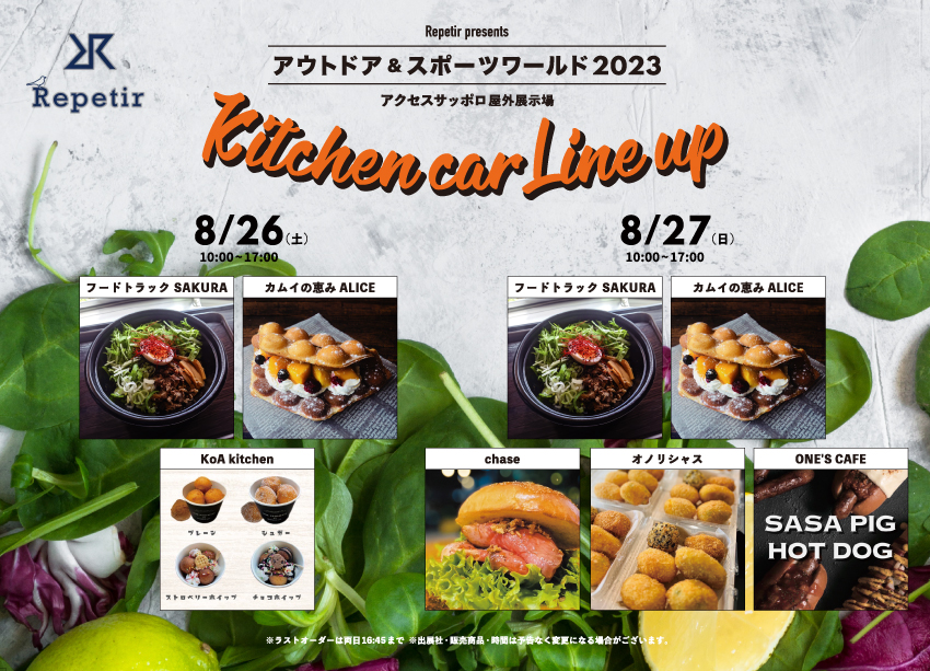 北海道キャンピングカー&アウトドアショー実行委員会(事務局:株式会社ネオプロジェクト)は、「北海道キャンピングカー&アウトドアショー2023」を2023年8月26日(土)~27日(日)に開催することをご報告いたします。最新のキャンピングカーを実際に間近で体験できるのはもちろん、「レペティール Presents アウトドア&スポーツワールド 2023」を同時開催など、ご家族で一日中楽しめる道内最大規模のキャンピングカー・アウトドア複合イベントとなっております。