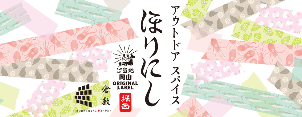 倉敷市が発祥の地であるマスキングテープに、地域の特産品がデザインされたラベル