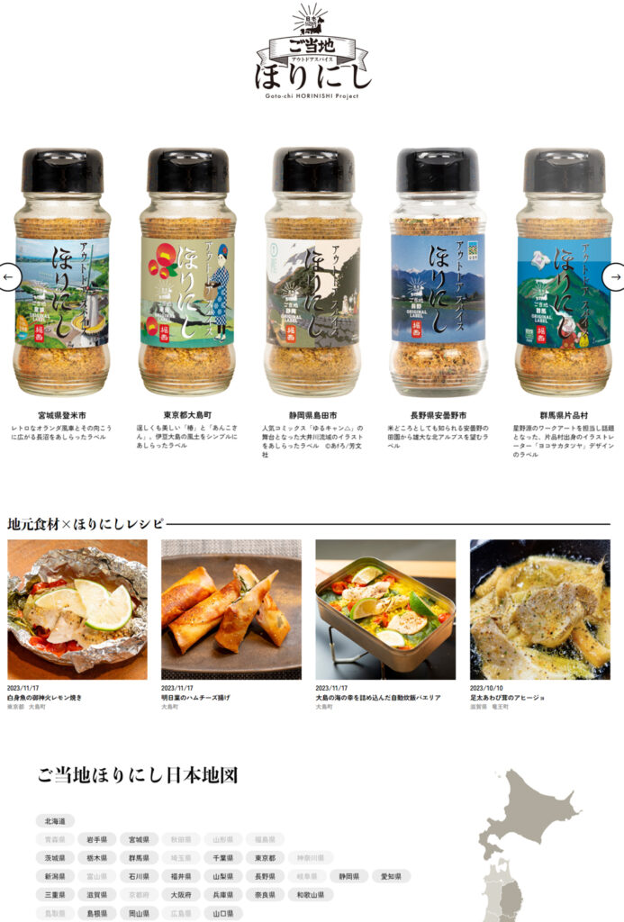 WEBサイトには、各地のご当地ほりにしの紹介や、食材、郷土料理とほりにしを掛け合わせたレシピの掲載など、食と結び付けた地域情報の発信を行います。