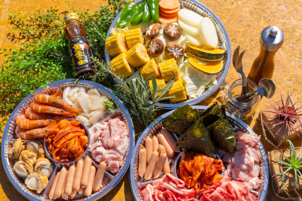<お手軽なオリジナルBBQセットもご用意可能!自分で用意しなくても食材の事前予約が可能!>