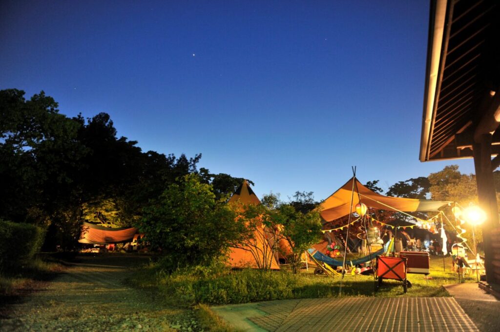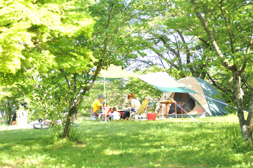 滋賀県米原市にある大人気のキャンプ場「グリーンパーク山東」は、伊吹山を一望する自然豊かな敷地にさまざまな「レジャー&スポーツ施設を備えた複合公園」です。一角には、1棟貸切型プライベートヴィラ「FOREST VILLA」が全5棟あり、キャンプ場はオートキャンプサイト全18区画、150張まで収容可能なフリーキャンプサイトエリアからなります。フリーキャンプサイト内や天然芝のふれあい広場横では日帰りBBQもでき、手ぶら又は食材持ち込みで楽しめます。本格派アスレチックの「フォレストアドベンチャー・米原」もあるので屋外でファミリーが1日中遊べます。