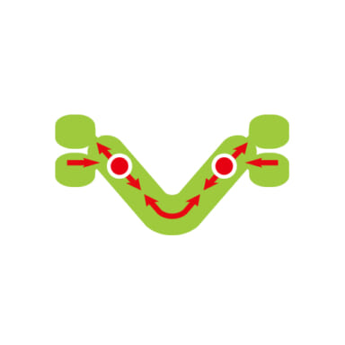 立体的に形成されたV字型の空気室と外周に配置された空気室が、空気の流動を最小限に抑え、身体を自然と中央に導き、寝心地と保温効率を飛躍的に向上させます。