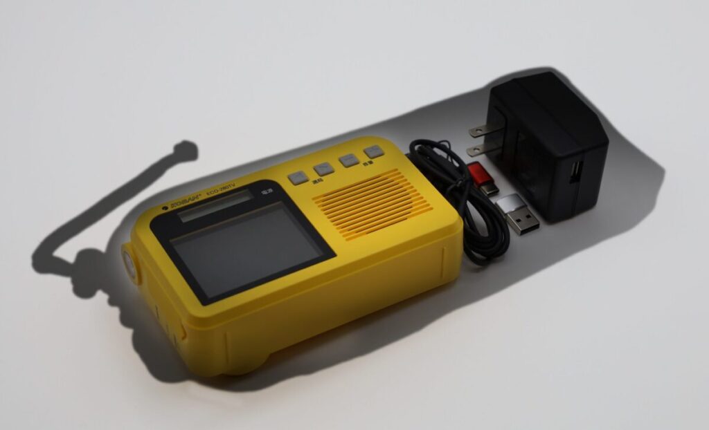 同製品は、2.8インチテレビをはじめラジオやLEDライト、サイレン機能も搭載しているのが特徴だ。電源はAC電源や乾電池、手回し充電にモバイルバッテリーと4種類に対応し、内充電池には長寿命で過放電しないキャパシタ(二重層コンデンサ)を使用している。アウトドアから災害時の備えまで活用できて便利である。