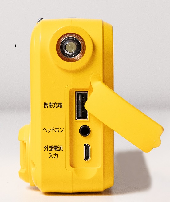 ●4種類の電源で使用可能:➀AC電源②乾電池③手回し充電④モバイルバッテリー