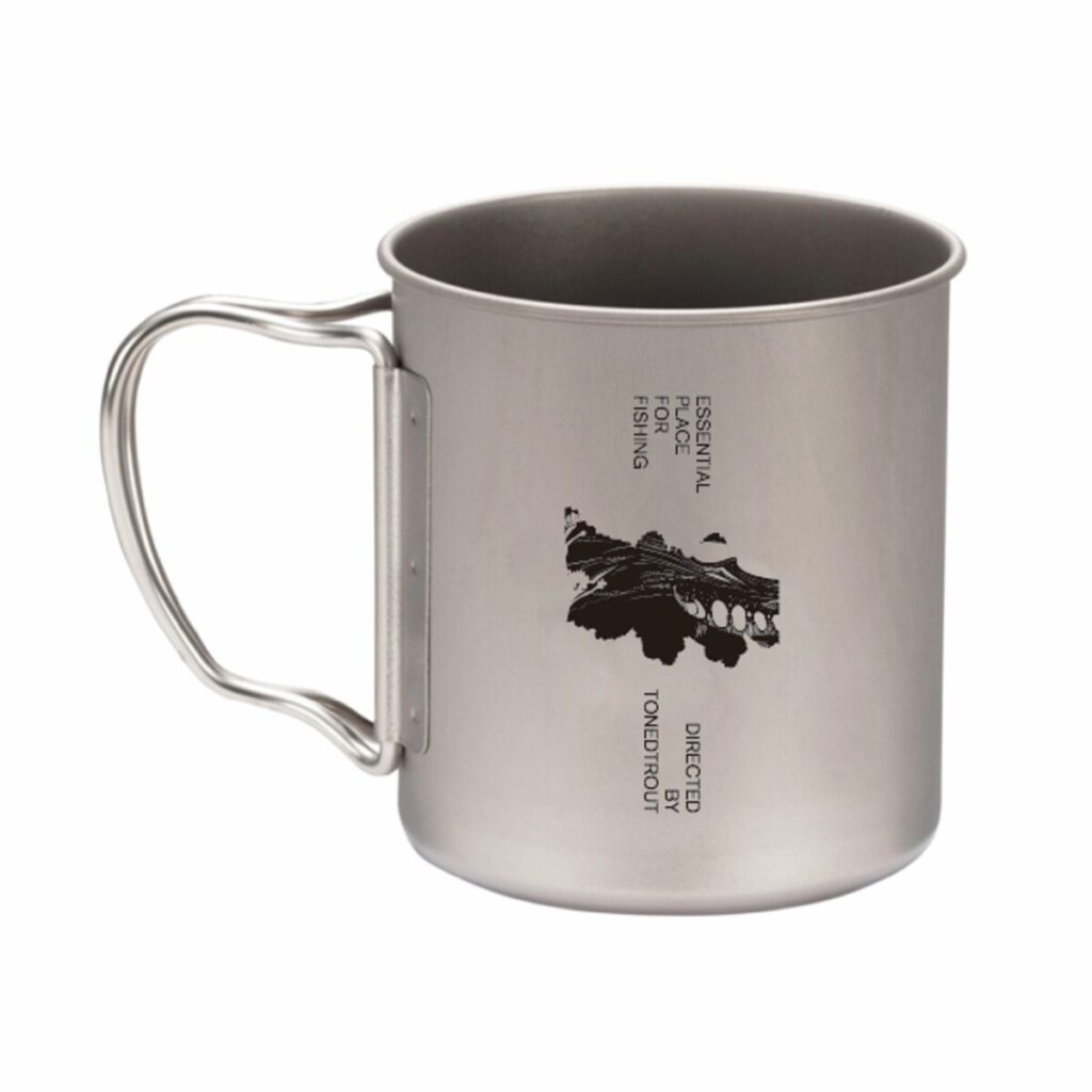 Snow PeakとTONEDTROUTのコラボシェラカップ。カップ側面には「山女魚」をモチーフにしたオリジナルグラフィックを採用しました。