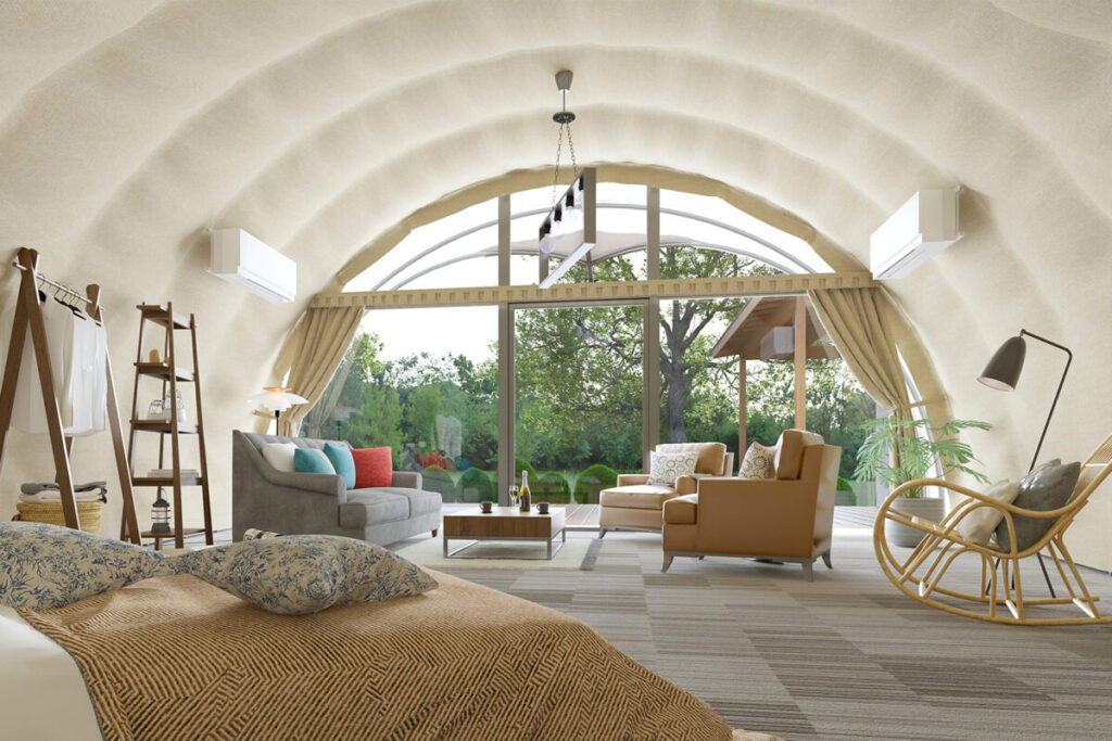 愛犬同伴可能な開放感を感じるコクーンテント、直径7Mの大空間が広がるドームテント、いずれも年中快適にお過ごし頂ける冷暖房を完備しております。