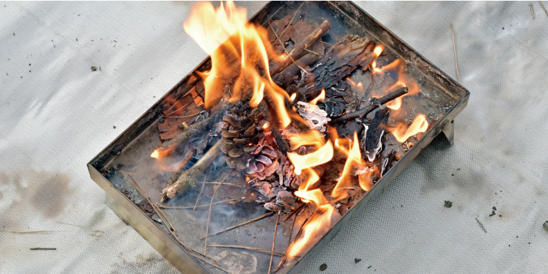 今回火起こしに使用したLIGHT MY FIREのファイヤースチールスカウトは、ブランドを代表するアイテムでもある。なんといってもスウェーデン軍のために開発した超本格派で、これがあれば過酷なまでの寒さや雪に襲われるスウェーデンでも、天候や標高に左右されず火を起こすことができる。発火回数は約3,000回で、1度購入すればかなり長い期間使用することができるのも特長の1つ。ストライカーにはホイッスル機能も搭載しており、緊急時の避難グッズにもなる優れものだ。