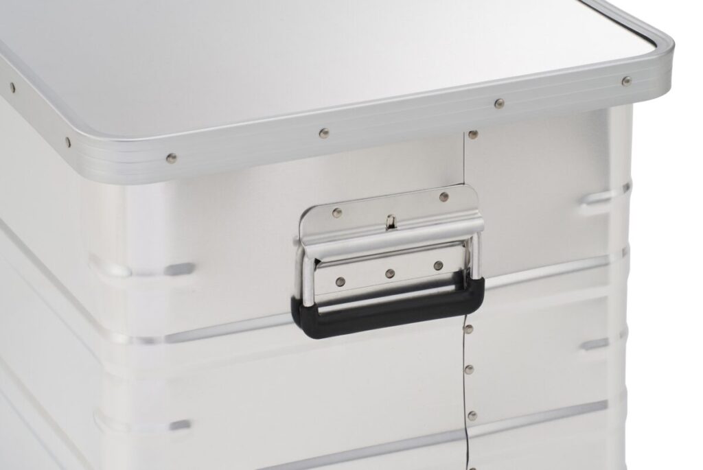本アイテムは、軽量かつ丈夫なアルミ製のコンテナボックスです。様々なものをひとまとめに収納できるので、まとまりにくいキャンプグッズの保管に最適なほか、左右には滑り止め付きのハンドルがあるので持ち運びにもたいへん便利です。