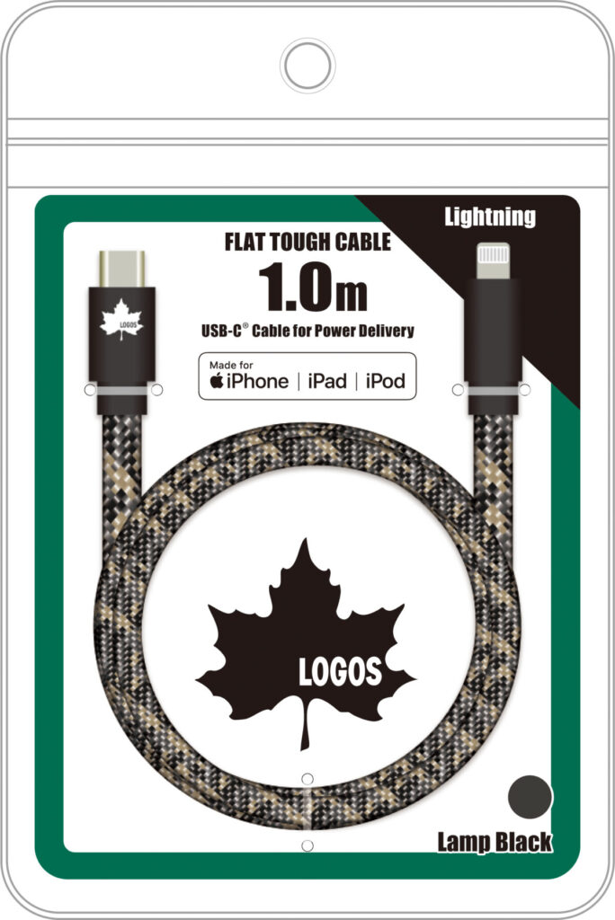 ●LOGOS フラットケーブル USB-C to L 1.0m (ライトニングケーブル)