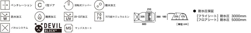 [フライシート]難燃性ポリオックス[インナーテント]ポリタフタ[フロアシート]ポリオックス[キャノピー]スチール[メッシュ]デビルブロックEX(フライシート)
