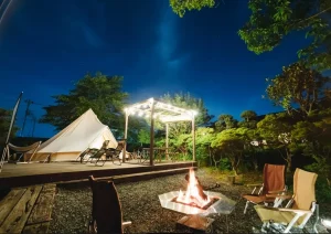 サウナ施設と同一敷地内のキャンプエリアでのテント泊プラン。