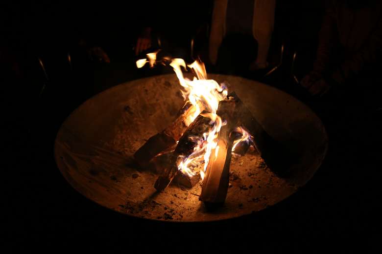 MOOSKAガイドのサポートの元、焚き火台で薪火料理にも挑戦できる。