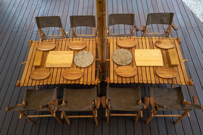 10人で一つのテーブルを囲めるリビングスペースと屋外の焚き火スペースで、心ゆくまで語り合える。