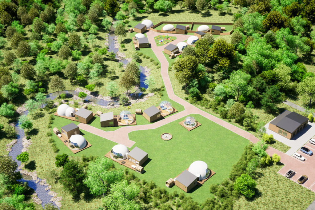 栃木県北部・那須高原エリアに誕生する『グランピングB&V 那須高原』 約10,000㎡の広大な敷地に全12棟・5種のユニークなグランピングテントをゆったりと配置、さらに各棟に良質な泉質をもつ天然温泉とバレルサウナ・水風呂、焚き火台を完備した栃木県初のプレミアム仕様。忙しい日常を離れ、大自然に囲まれた美しい非日常空間でアクティブなアウトドア体験と極上の癒しの時間を満喫する、ここにしかないご滞在をお楽しみください。