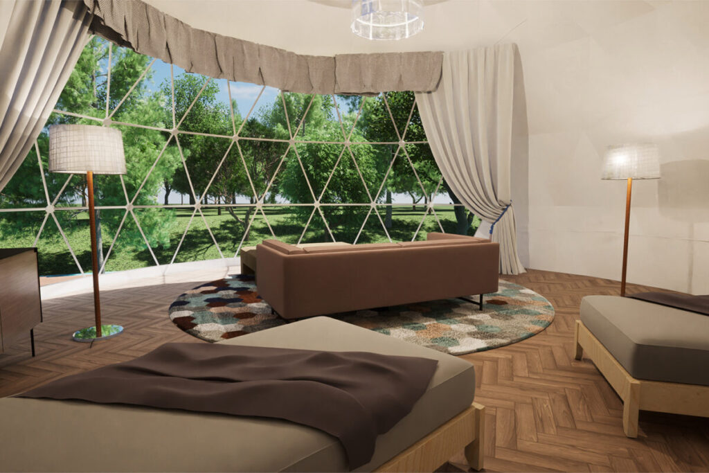②非日常のユニーク空間に滞在・選べる5種のグランピングテント