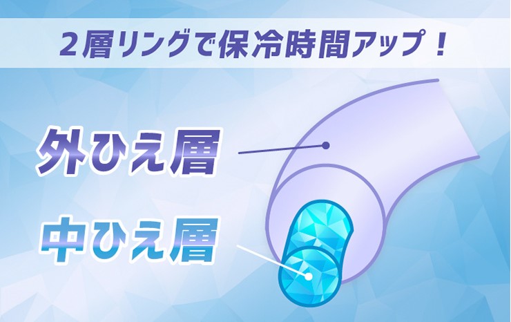 28℃未満で自然凍結するPCM素材を使用し、ダブルリング構造により保冷3時間を実現したネッククーラーです。