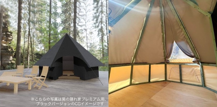 同製品は、日本国内で育まれた木材を骨格としたラグジュアリーな八角形のテントである。男の隠れ家の特別仕様であるブラックバージョンは高級感をさらに引き立て、窓部分からは壮大な景色が楽しめるのが特徴だ。日常の忙しさを忘れ、ここでしか感じられない贅沢を体感してみてはいかがだろうか。価格は、1,650,000円(税込)。