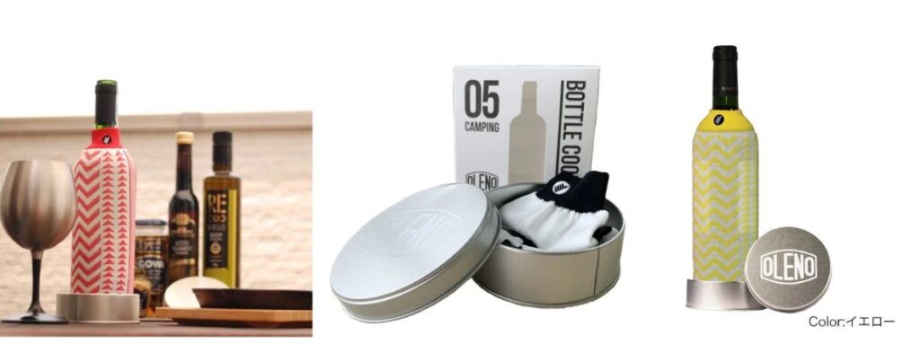 ニットの伸縮性によって様々な形状のボトルに対応できるのも魅力だ。もちろん、ワインボトルにも使えるから、「Pj珠ジュース」がいい感じの温度でキープできる。