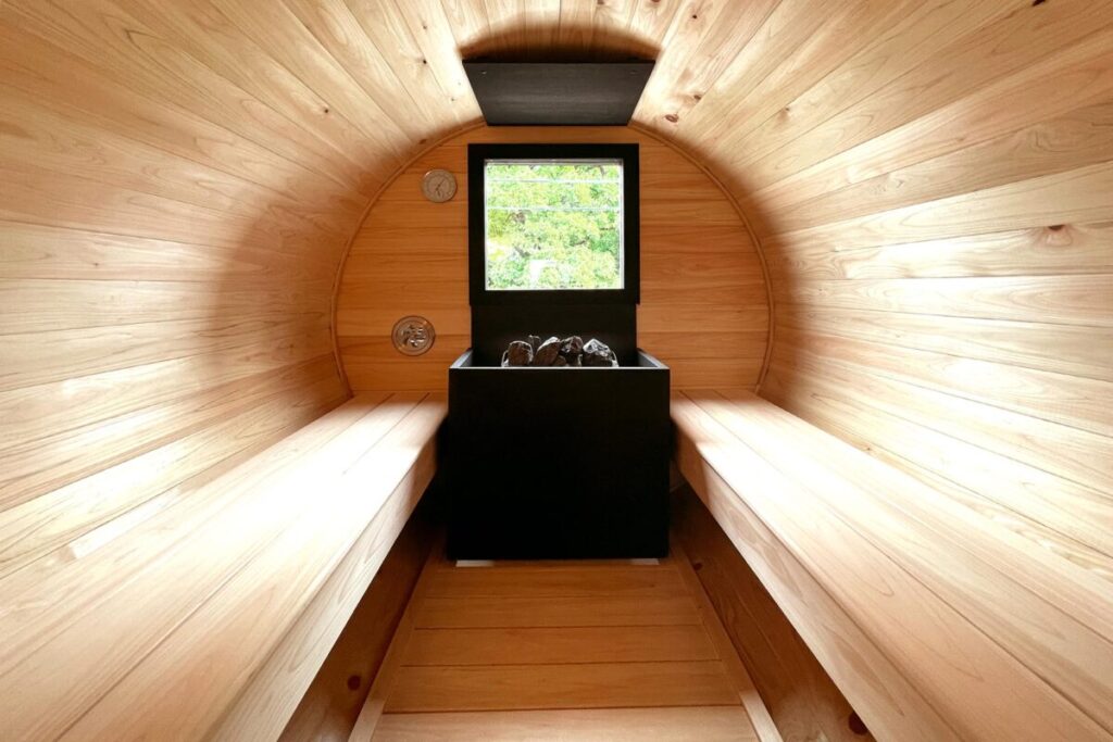 ④大自然の中でのバレルサウナ→外気浴で“ととのう”を体験