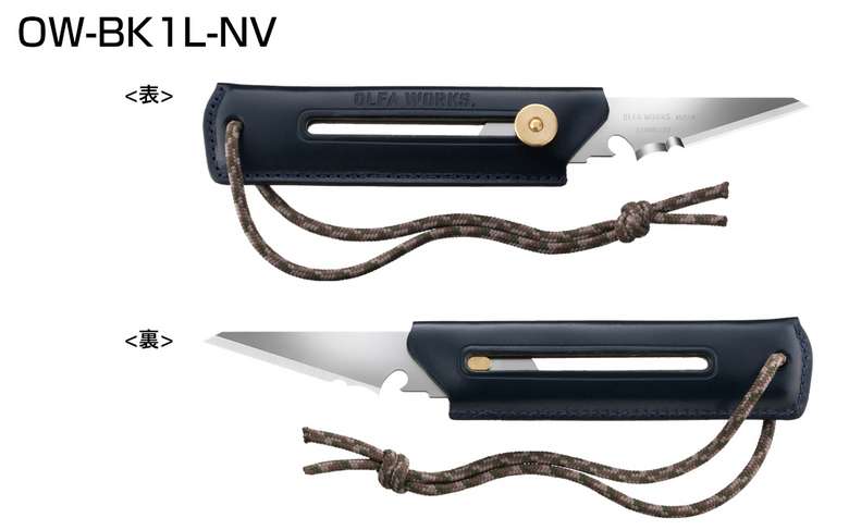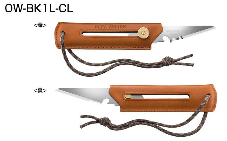 グリップ部分に天然皮革が使用されており、使い込むほどに手触りや味わいの変化を楽しむ事が出来る。カッターナイフのパイオニアが手掛ける小型ナイフの切れ味は言うまでも無く、刃の後端にある切り欠き部分で熱くなった調理器具などを持ち上げたり、使用済みのガス缶の穴あけが出来る等、アウトドアでの使い勝手は抜群。