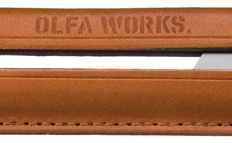 レザーグリップには、「OLFA WORKS」ブランドロゴの焼き印が入っており、より特別感がある。
