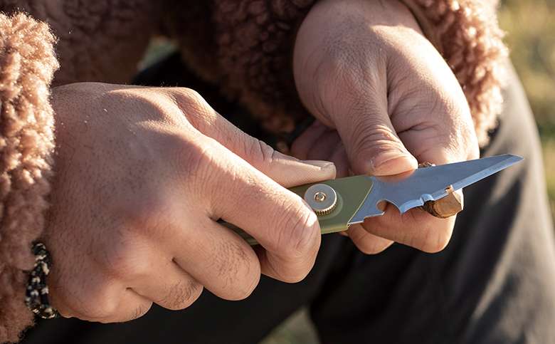 2020年2月のブランド立ち上げと同時に発売された替刃式小型ナイフ。携帯性に優れたフォルム、水洗いも可能なステンレス刃に加えて、刃研磨部の後端にある切り欠きを利用したアクション(熱くなった調理器具を引っかけて持ち上げる、空になったガス缶のガス抜きに穴をあける等)がアウトドアシーンで実用的であることが評価され、これまでの累計出荷数は2万個を突破している。
