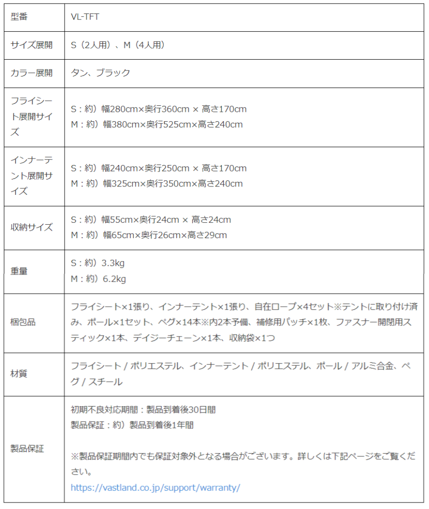 VASTLAND株式会社は、自社で運営するキャンプギアブランド「VASTLAND(ヴァストランド)」の、「ワンポールテント」を2023年12月9日(土)より発売する。