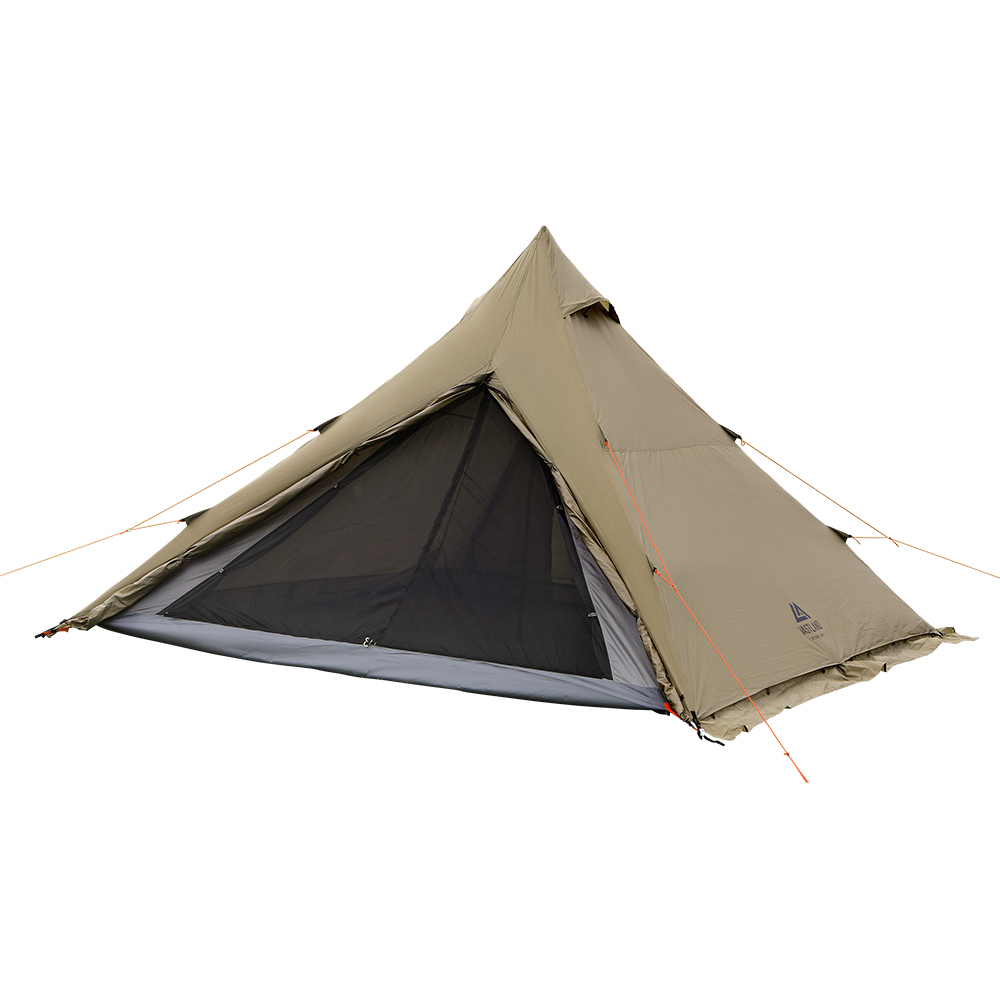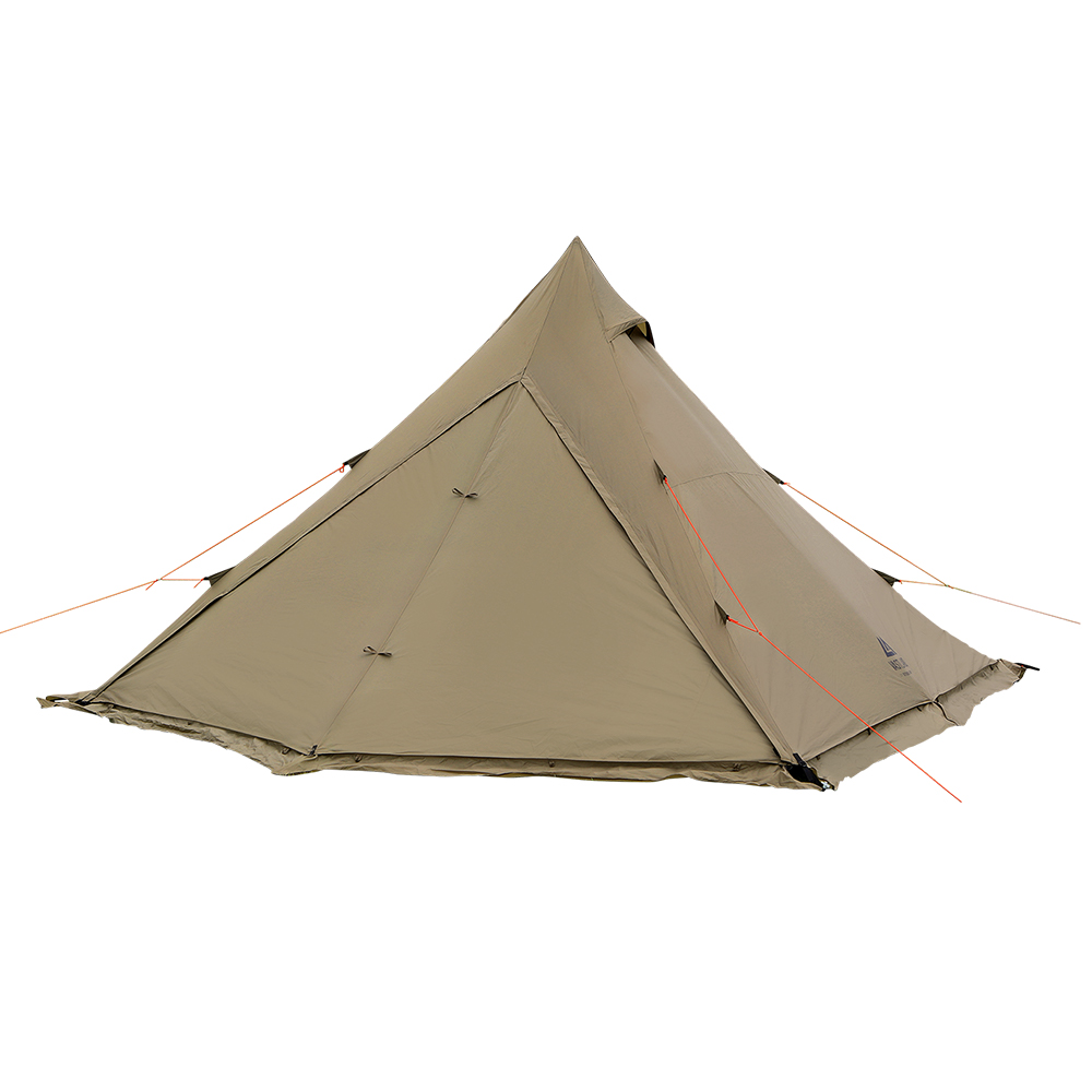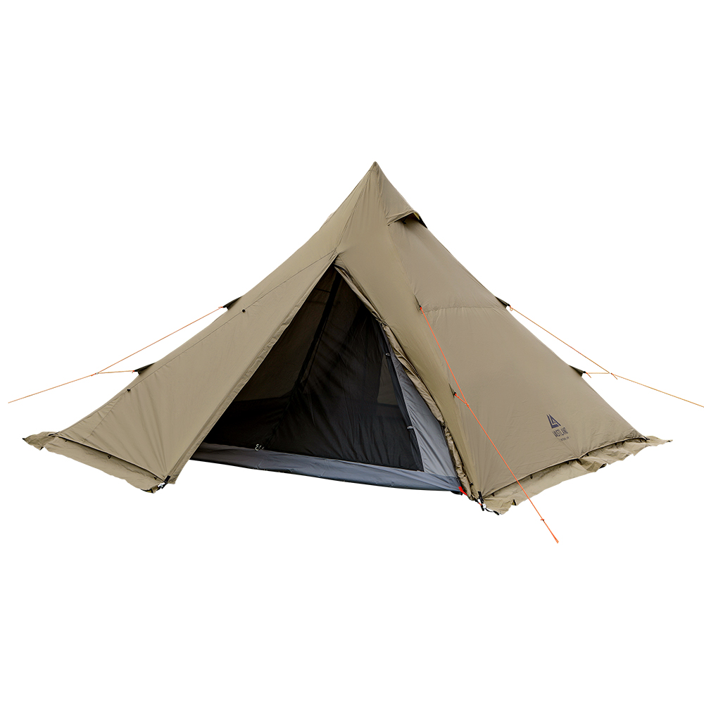 ~従来のワンポールテントのデメリットであるリビングスペースの確保を解消した一張り。「タープを持っていない」、「テントが設営できるかわからない」などキャンプ初心者でも感覚的に設営・使用できる設計です。~