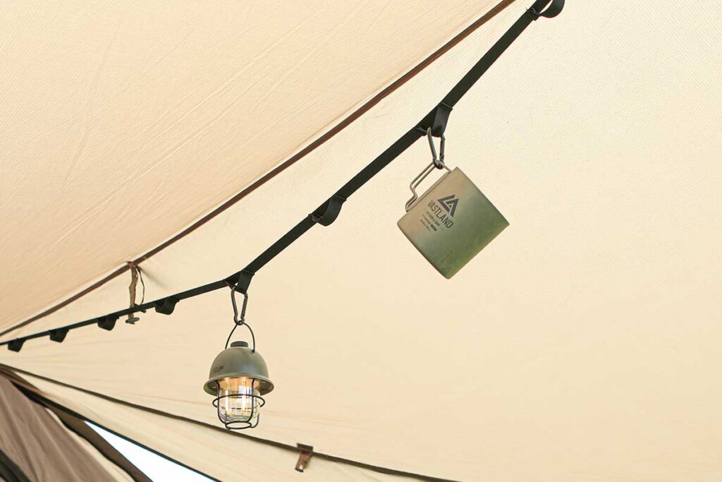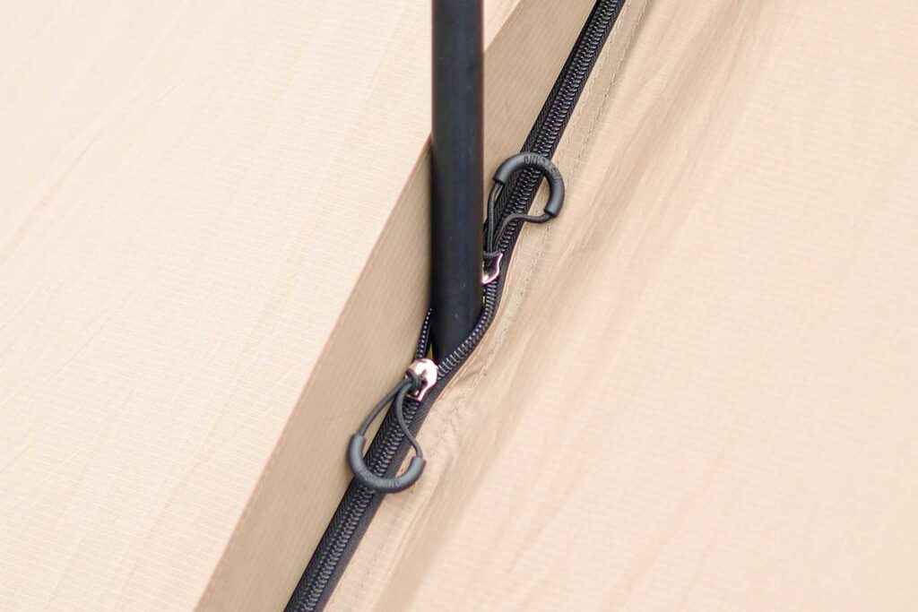 背面ドアはトリプルスライダー構造になっているため、ドア部分のファスナーを閉じた状態でタープポールを配置することが可能です。
