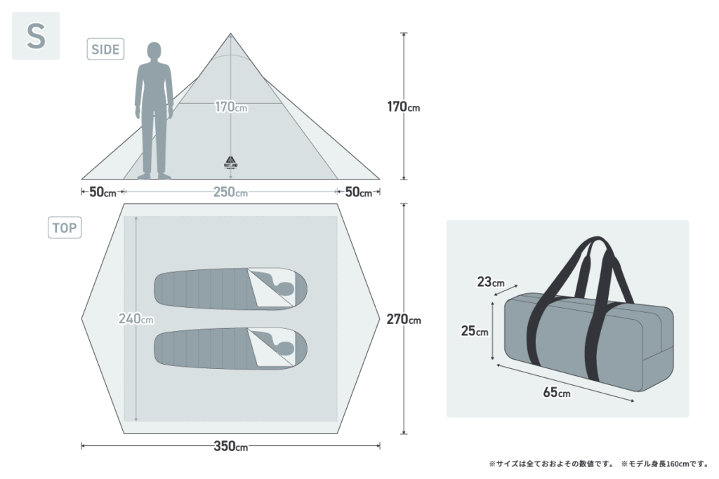 ※キャノピー立ち上げ時のポール、自在ロープ、ペグは付属しておりません。ご自身でご用意ください。