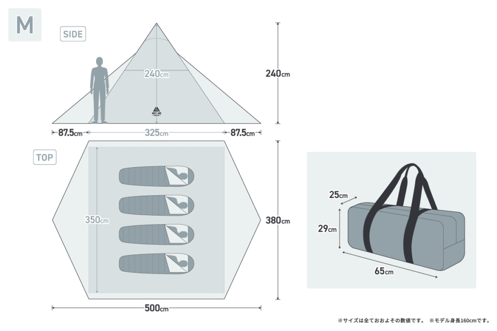 - 320cm×320cm(ワンポールテント Mに対応):4,180円(税込)