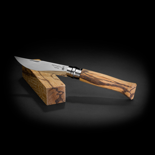 アウトドアブランド「OPINEL」を展開する株式会社ハイマウントは、鏡面加工された刃と銘木材スネークウッドの柄の限定モデル「Snake Stainless No.08」を発売する。蛇の鱗のような美しい模様をもつスネークウッドは、別名「豹麗木」「レターウッド」とも呼ばれる世界最高峰の銘木材。日本国内120本限定となる。価格は6,380円(税込)となる。