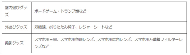 伊勢志摩BASEでは、自然を楽しむレジャーシートや双眼鏡など、お部屋でわいわい楽しむボードゲーム、トランプ、グランピング体験を思い出に残すスマホ用三脚、レンズ各種などレンタルグッズを豊富にご用意しております。