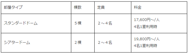 2タイプ7棟のドーム型テントでのゆったりとした静かなプライベートグランピングをご体験いただけます。