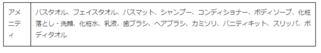 タオルや歯ブラシなど基本的なものはもちろん、ご滞在にあたって不自由ないようご用意しております。