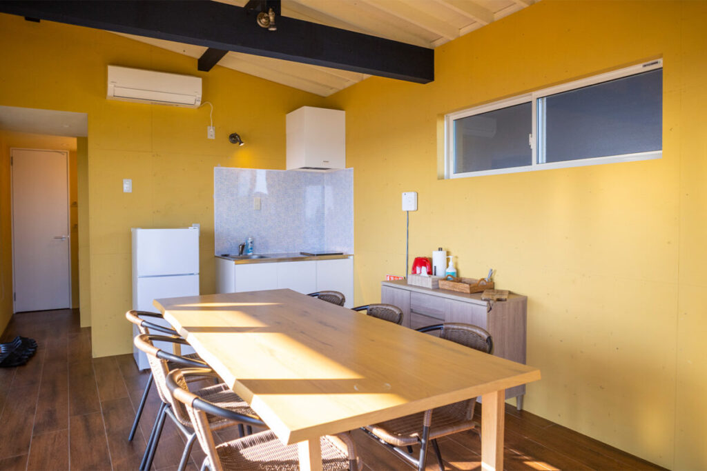 オールシーズン・全天候型でグランピングをお楽しみ頂けるよう、各グランピングテントのすぐ側に、建物型の食事スペースをご用意。雨天でも安心・快適にBBQをお楽しみ頂けます。