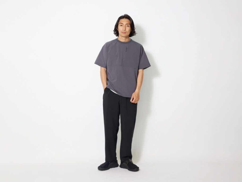 「Breathable Quick Dry」シリーズは、スノーピークを代表する夏の定番シリーズです。ヨコ糸には原料の50%をリサイクル素材とした東レの「Primeflex®」を使用しているため、吸水速乾性に優れています。また、通気性を確保するため、東レの特許技術によって後加工で生地に通気孔を設けることで、高い通気性を実現しました。タテ糸にはペットボトルを原料とする東レの「&+®」を採用。2つのリサイクル素材を交織させた、環境にも配慮したアイテムとなっています。