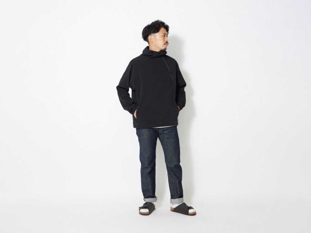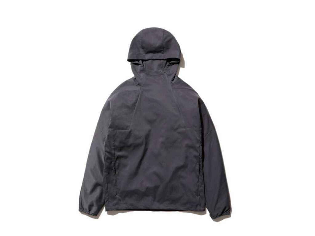 ファスナートップが肌に当たらないオフセット仕様で、軽量化を意識したフード口・袖口・裾口となり、裾はコードを絞ってアジャスト可能。脇にはファスナーポケットがあり、中身の落下を防止します。シンプルで使い勝手が良く、デザイン性のあるキャンプウェアやバッグ、小物類など、様々なアイテムと合わせることができます。